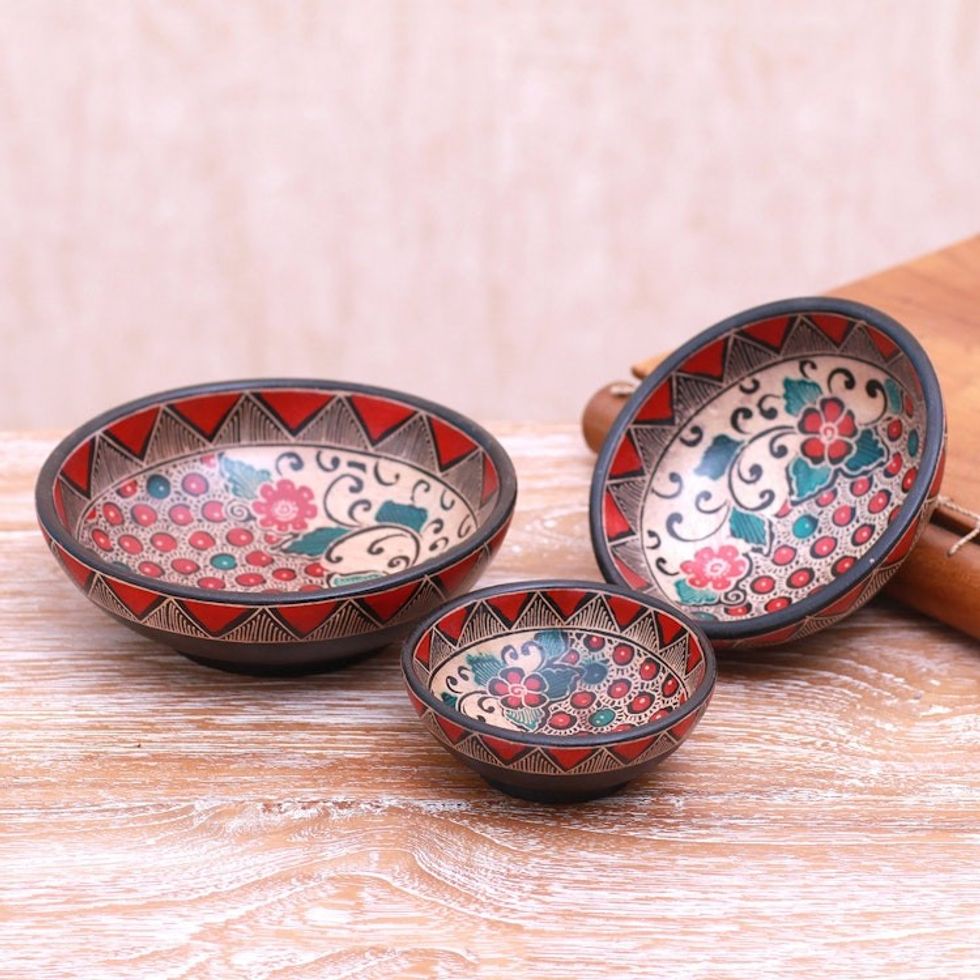 Floral Batik Wood Centerpieces from Java Set of 3 'Cherry Decor' Item ID: 2671744940
