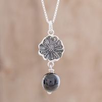 Floral Black Jade Pendant Necklace from Guatemala 'Guatemalan Flower' Item ID: 2671779303