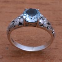 Floral Blue Topaz Single-Stone Ring from Bali 'Floral Glint' Item ID: 2669923049