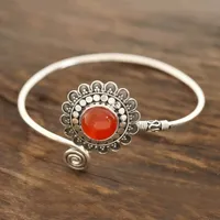 Floral Carnelian Cuff Bracelet Crafted in India 'Floral Dusk' Item ID: 2671789853