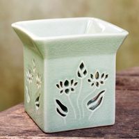 Floral Ceramic Clay Tealight Oil Warmer Handcrafted Thailand 'Lotus Garden' Item ID: 2669897460