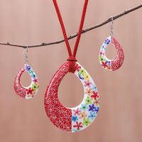 Floral Ceramic Jewelry Set Crafted in Thailand 'Thai Blossom' Item ID: 2671798388