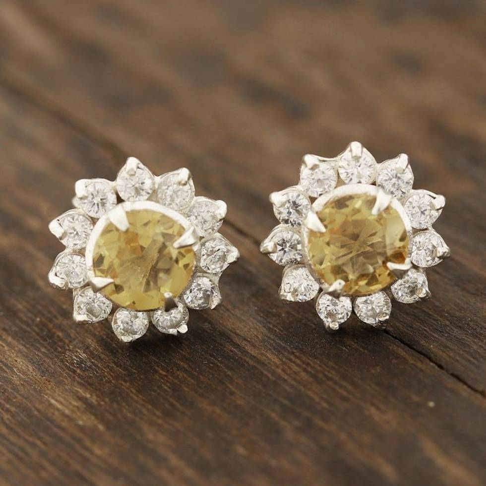 Floral Citrine Stud Earrings Crafted in India 'Gleaming Flower' Item ID: 2671789518