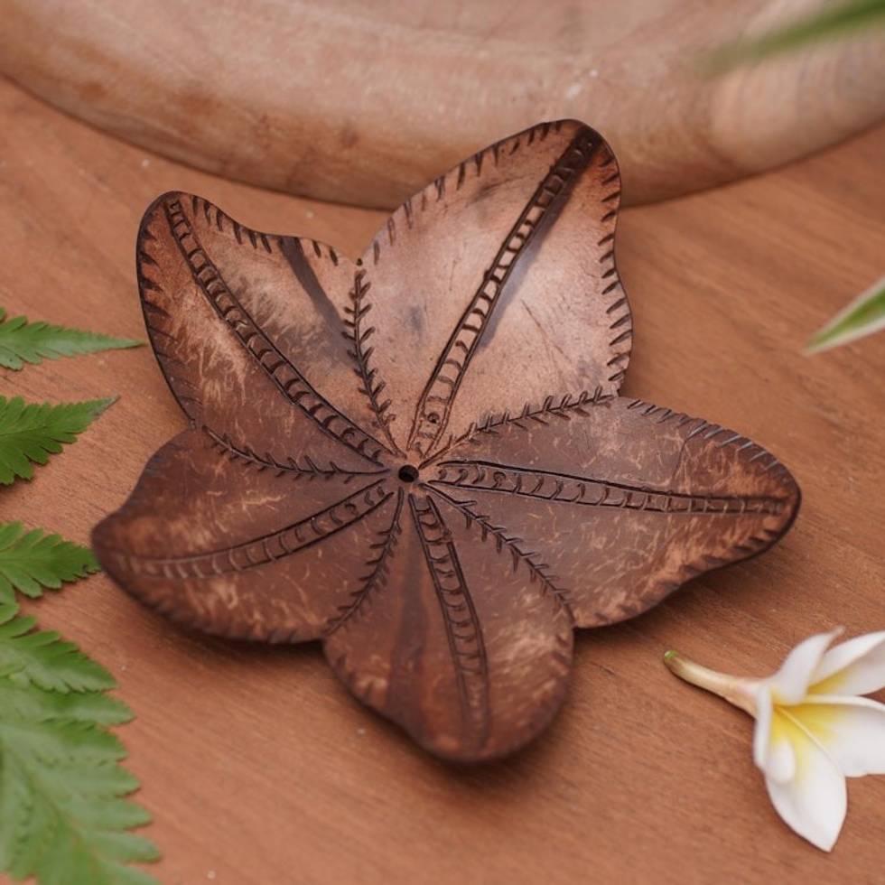 Floral Coconut Shell Soap Holder Carved by Balinese Artisan 'Robust Rose' Item ID: 2671821109