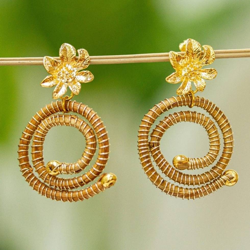 Floral Earrings in 14k Gold Plate 'Forest Spiral' Item ID: 2671808279