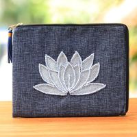Floral Embellished Jute Coin Purse in Midnight from Java 'God's Grace in Midnight' Item ID: 2671736821