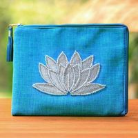 Floral Embellished Jute Coin Purse in Sky Blue from Java 'God's Grace in Sky Blue' Item ID: 2671736048