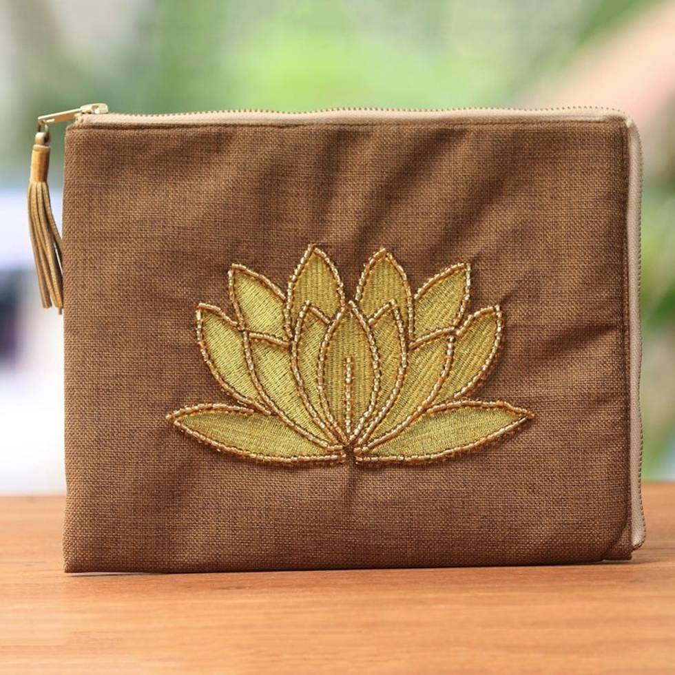 Floral Embellished Jute Coin Purse in Tan from Java 'God's Grace in Tan' Item ID: 2671736511