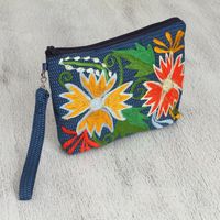 Floral Embroidered Cotton Cosmetic Bag from Mexico 'Flowers of Zinacantan' Item ID: 2669897350