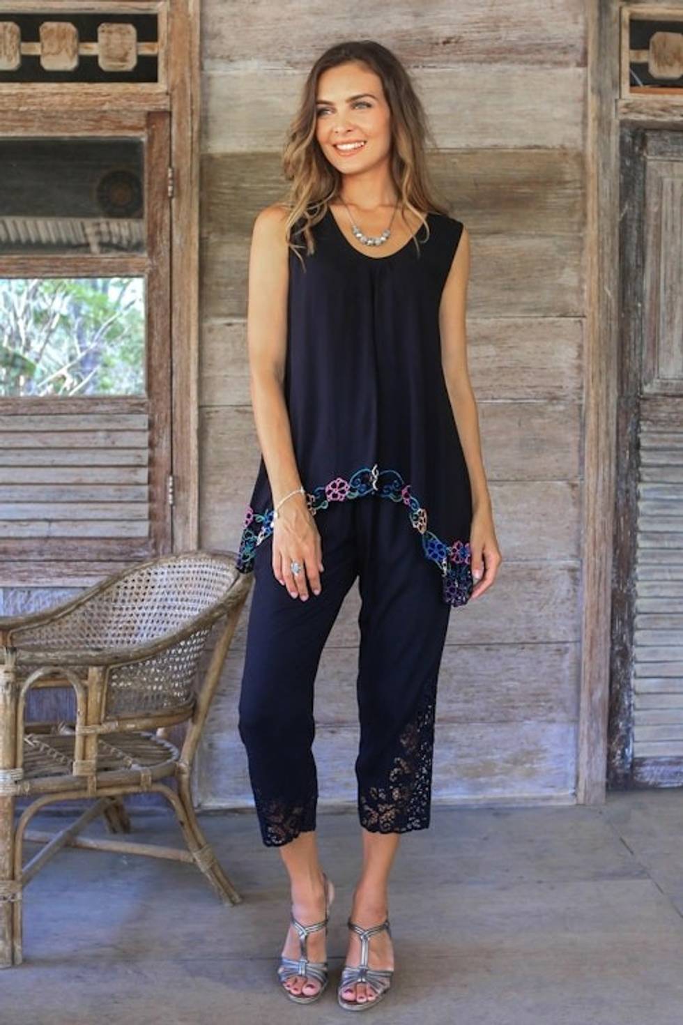 This cami is so soft and gorgeous! Better than silk. I’m also wearing it with the white embroidered blouse from Suciati. Simple perfection!
