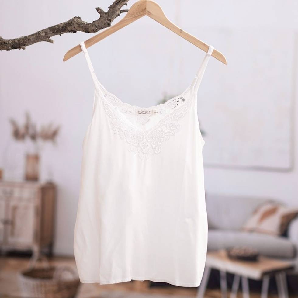 Floral Embroidered Rayon Tank Top in Snow White from Bali 'Snow White Kerawang' Item ID: 2669891931