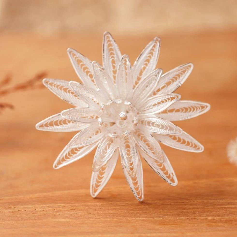 Floral Filigree Sterling Silver Brooch Pin 'Lotus Filigree' Item ID: 2671472010