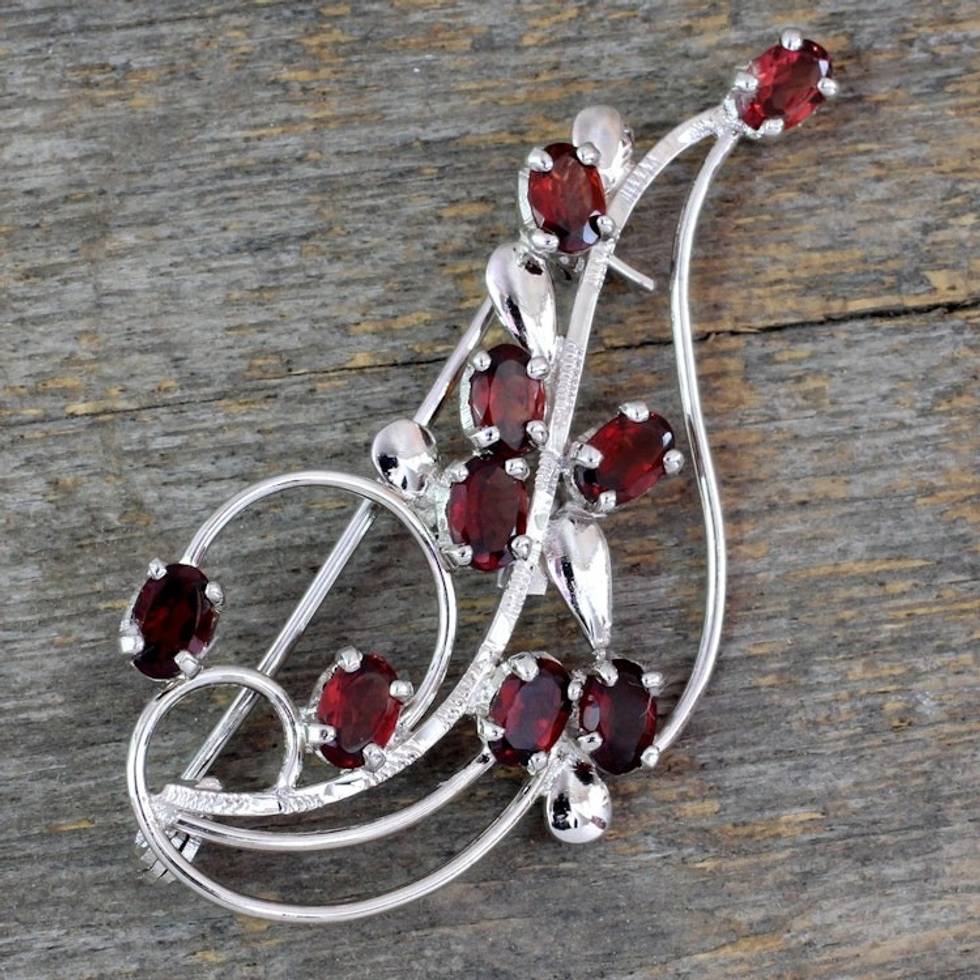 Floral Garnet and Sterling Silver Brooch Pin 'My Bouquet' Item ID: 2671619775