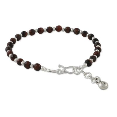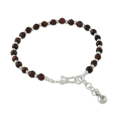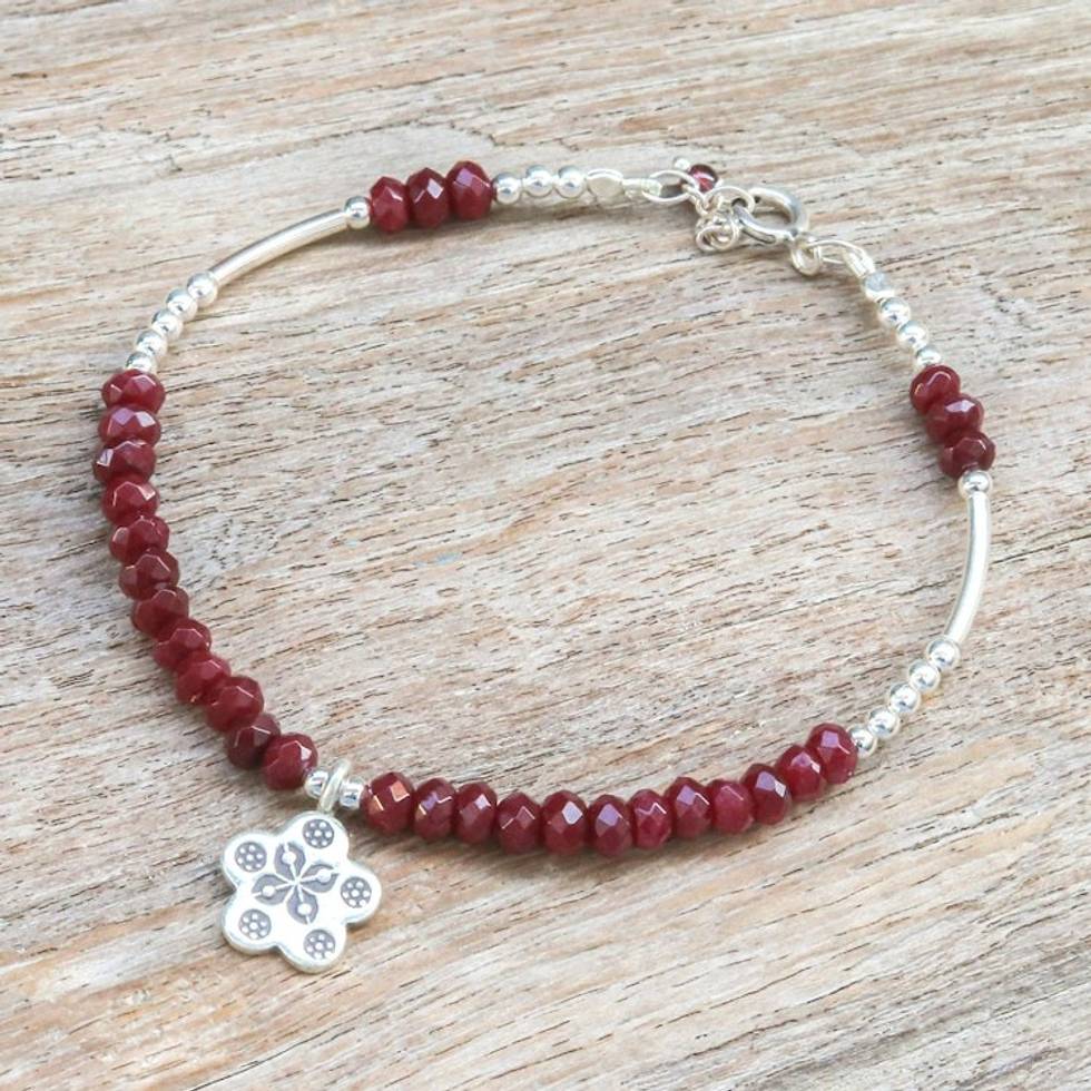 Floral Garnet Beaded Bracelet from Thailand 'Karen Glisten' Item ID: 2671799605