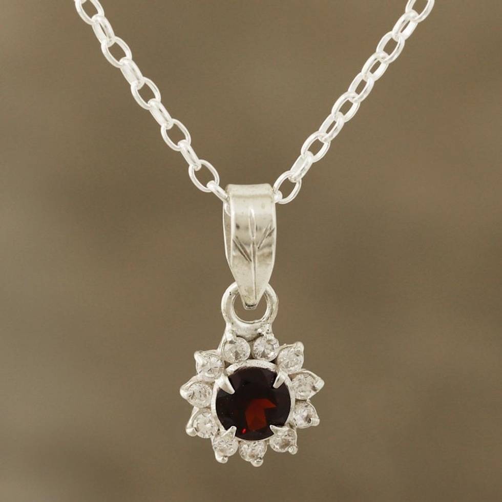 Floral Garnet Pendant Necklace from India 'Gleaming Flower' Item ID: 2669925500