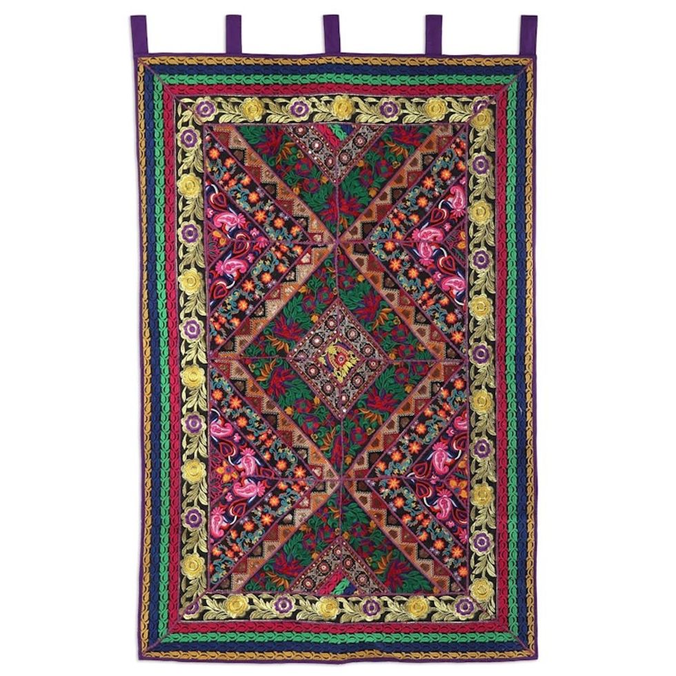 Floral Geometric Recycled Cotton Blend Wall Hanging 'Floral Window' Item ID: 2669925267