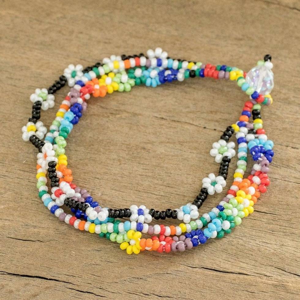 Floral Glass Bead Multi-Strand Bracelet from Guatemala 'Glass Garden' Item ID: 2669934785