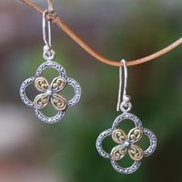 Floral Gold Accented Sterling Silver Dangle Earrings 'Summery Petals' Item ID: 2671477052