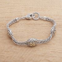 Floral Gold Accented Sterling Silver Station Bracelet 'Floral Isles' Item ID: 2669922386