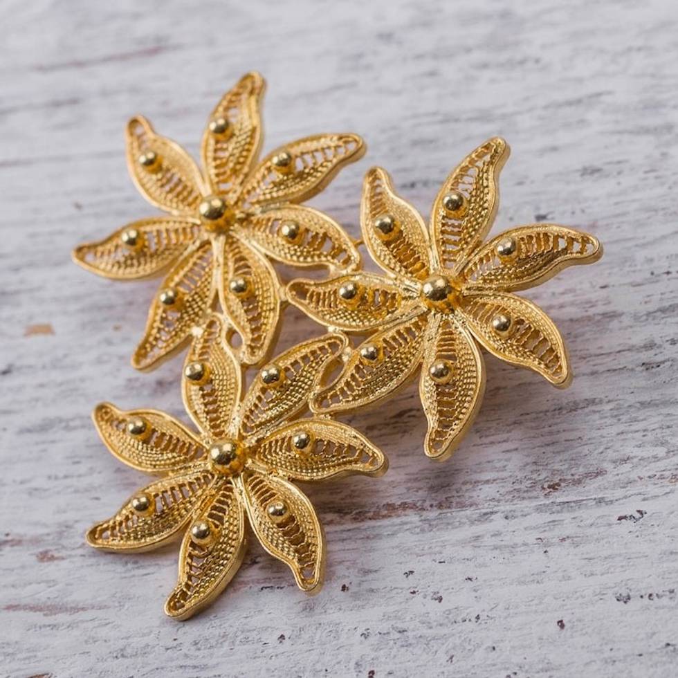 Floral Gold Plated Filigree Brooch Pin 'Amazon Bouquet' Item ID: 2671691218