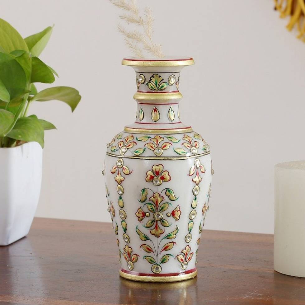 Floral Hand-Painted Marble Decorative Vase in Golden and Red 'Palace of the Noble' Item ID: 2671652074