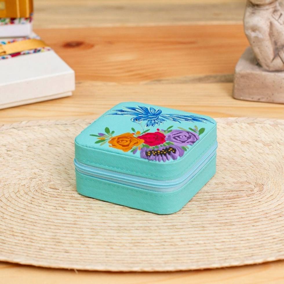 Floral Hand-Painted Mint Green Faux Leather Jewelry Box 'Mint Paradise' Item ID: 2671798529