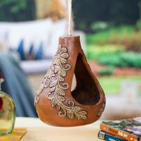 Floral Hand-Painted Warm-Toned Ceramic Hanging Planter 'Mexico's Nature' Item ID: 2671807480