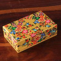 Floral Hand-Painted Yellow Papier Mache Decorative Box 'Golden Scenes' Item ID: 2676663885