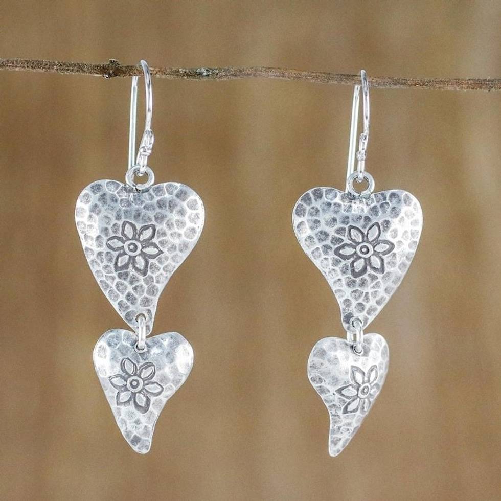 Floral Heart-Shaped Sterling Silver Earrings from Thailand 'Flowering Love' Item ID: 2671800874