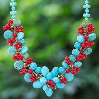 Floral Howlite and Glass Beaded Necklace from Thailand 'Summer Blossoming' Item ID: 2669928140