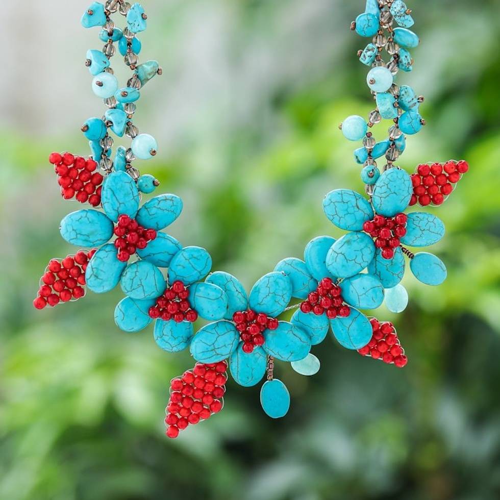 Floral Howlite and Quartz Beaded Statement Necklace 'Summer Blossoming' Item ID: 2669930255