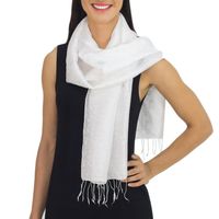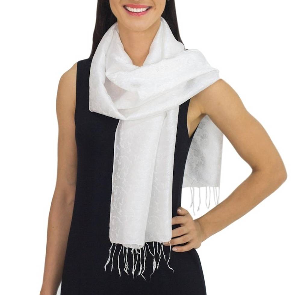 Floral Ivory Rayon Blend Scarf from Thailand 'Ivory Bouquet' Item ID: 2671802484