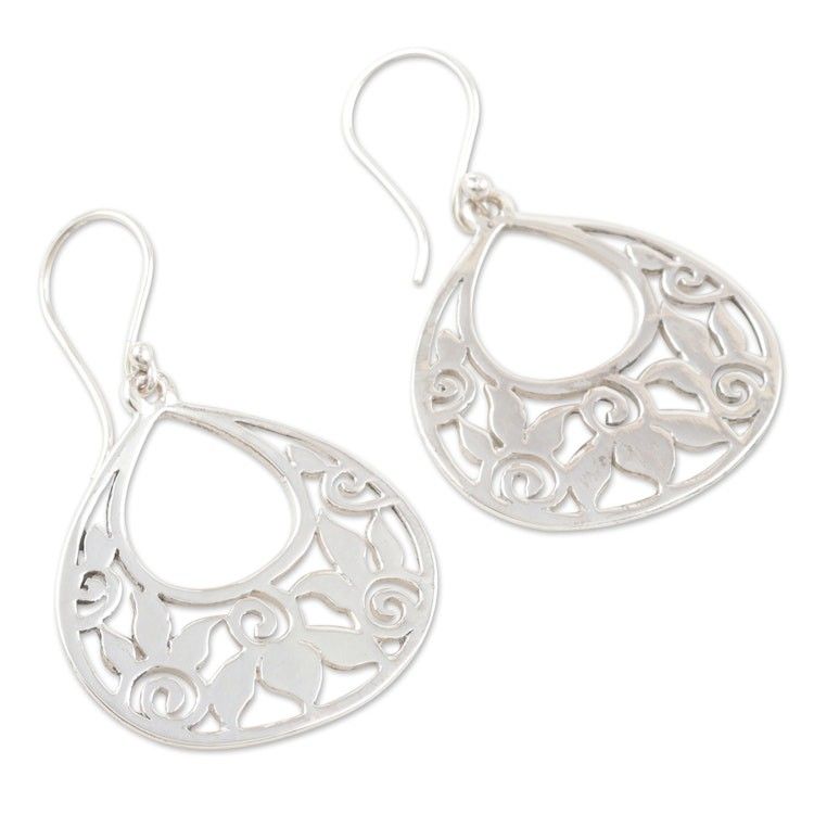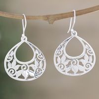 Floral Jewelry from India Handmade Silver Earrings 'Moonlit Lotus' Item ID: 2671794497