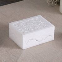 Floral Leaf Hand-Carved Rectangular Alabaster Decorative Box 'Glorious Blossom' Item ID: 2676663895