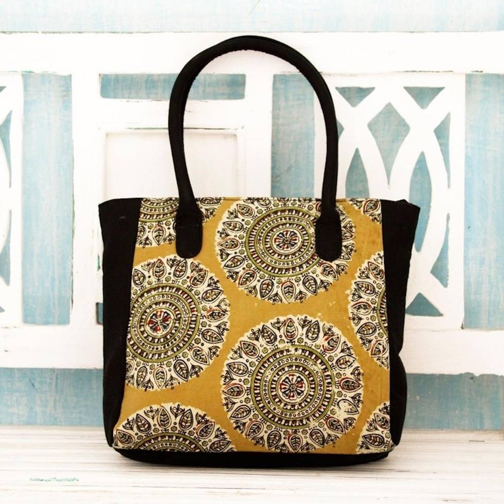 Floral Mandalas Block Print Cotton Tote Bag from India 'Blossoming Mandalas' Item ID: 2671793583