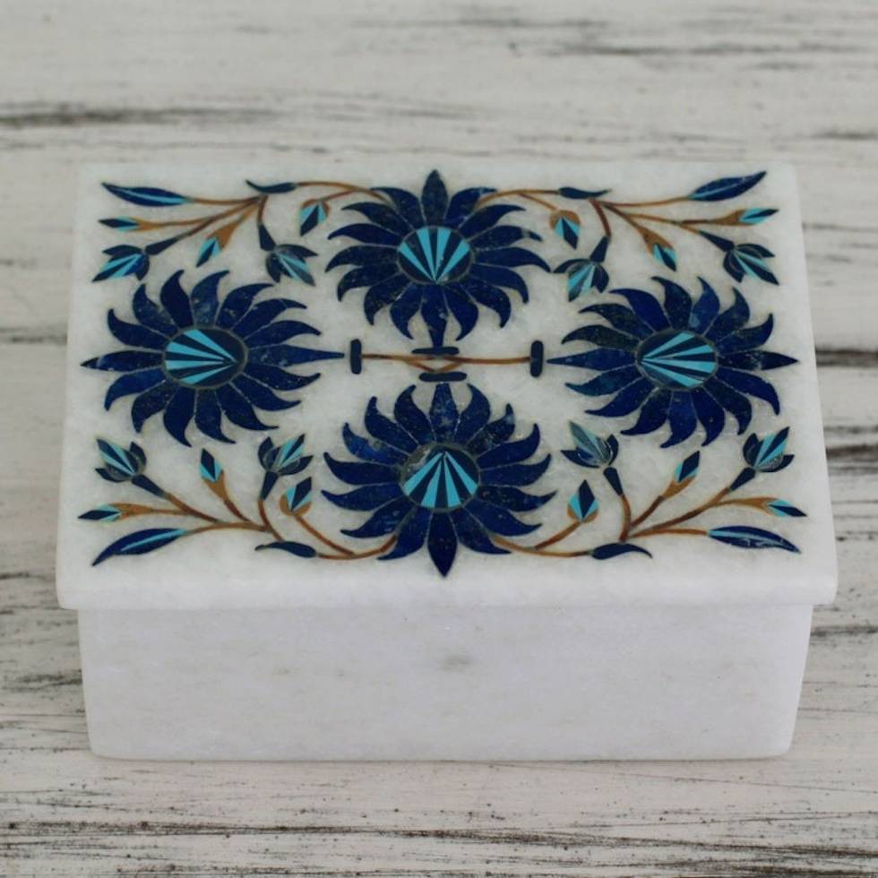 Floral Marble Jewelry Box from India 'Carnation Sky' Item ID: 2669923880