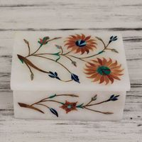 Floral Marble Jewelry Box from India 'Sunflower Duet' Item ID: 2669892180