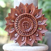 Floral Motif Artisan Hand Carved Wood Relief Panel 'Sunflower' Item ID: 2669911937