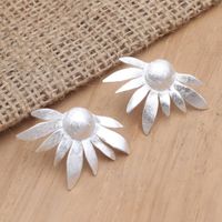 Floral-Motif Sterling Silver Drop Earrings 'Soul Flower' Item ID: 2671745514