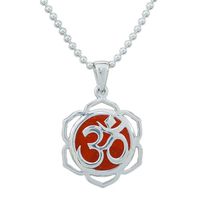 Floral Om-Themed Carnelian Pendant Necklace from Thailand 'Sacred Fire Bloom' Item ID: 2671796750