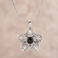 Floral Onyx Pendant Necklace from India 'Delightful Midnight' Item ID: 2671792768