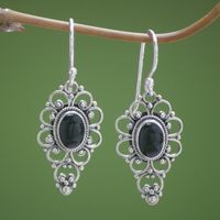 Floral Onyx Sterling Silver Dangle Earrings 'Precious Night' Item ID: 2669920830