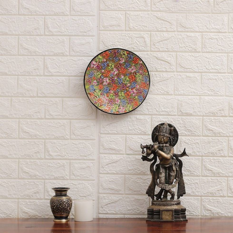 Floral Painted Colorful Round Wood and Papier Mache Panel 'Blooming Sun' Item ID: 2671782948
