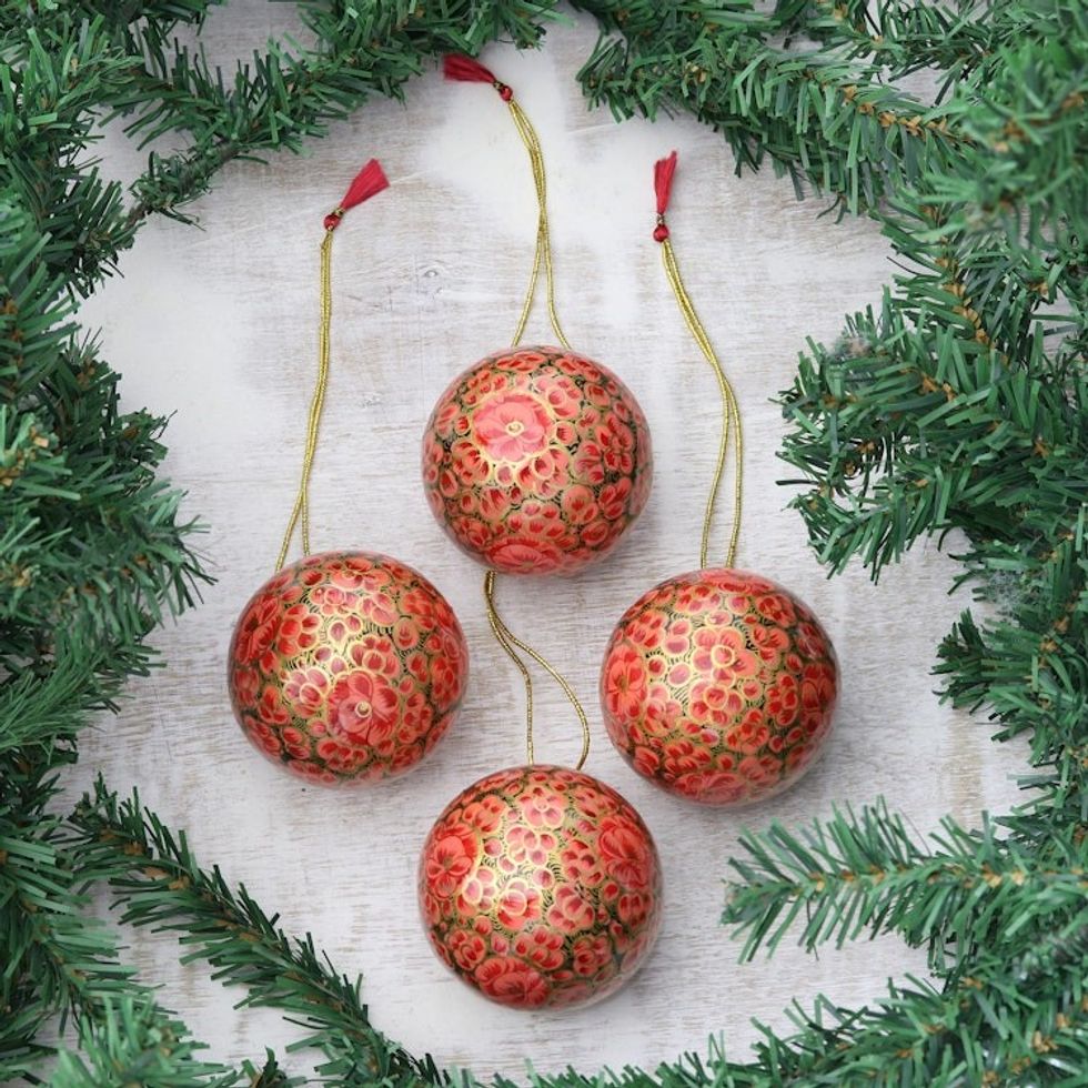 Floral Papier Mache Ornaments from India Set of 4 'Kashmir Blossom' Item ID: 2669925185