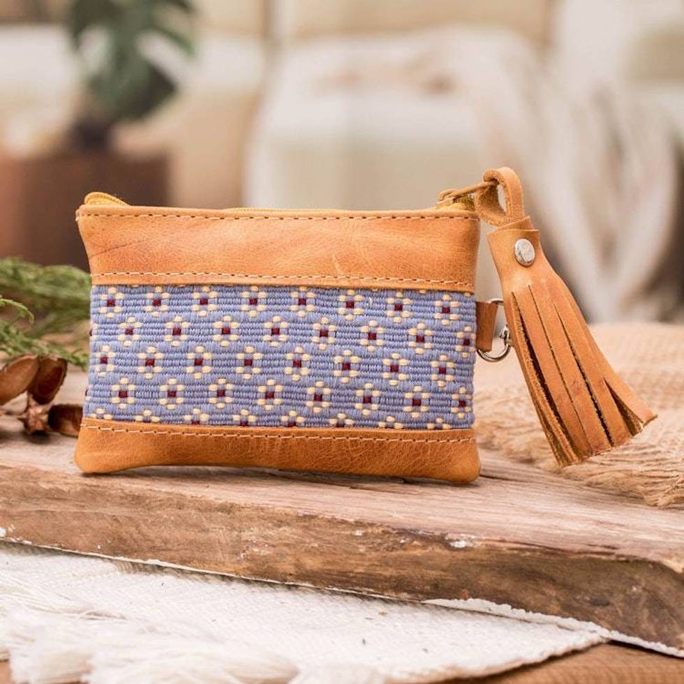 "Tiny blooms spread around this charming design from the always-beautiful Guatemalan region. Artisan Laura Leticia Burrion designs this practical coin purse, whose leather accents merge with the pattern's blue hue of serenity. A zipper crowns the piece, allowing easy use."