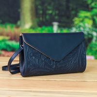 Floral Patterned Leather Sling and Clutch in a Midnight Hue 'Historic Floral in Midnight' Item ID: 2671807605