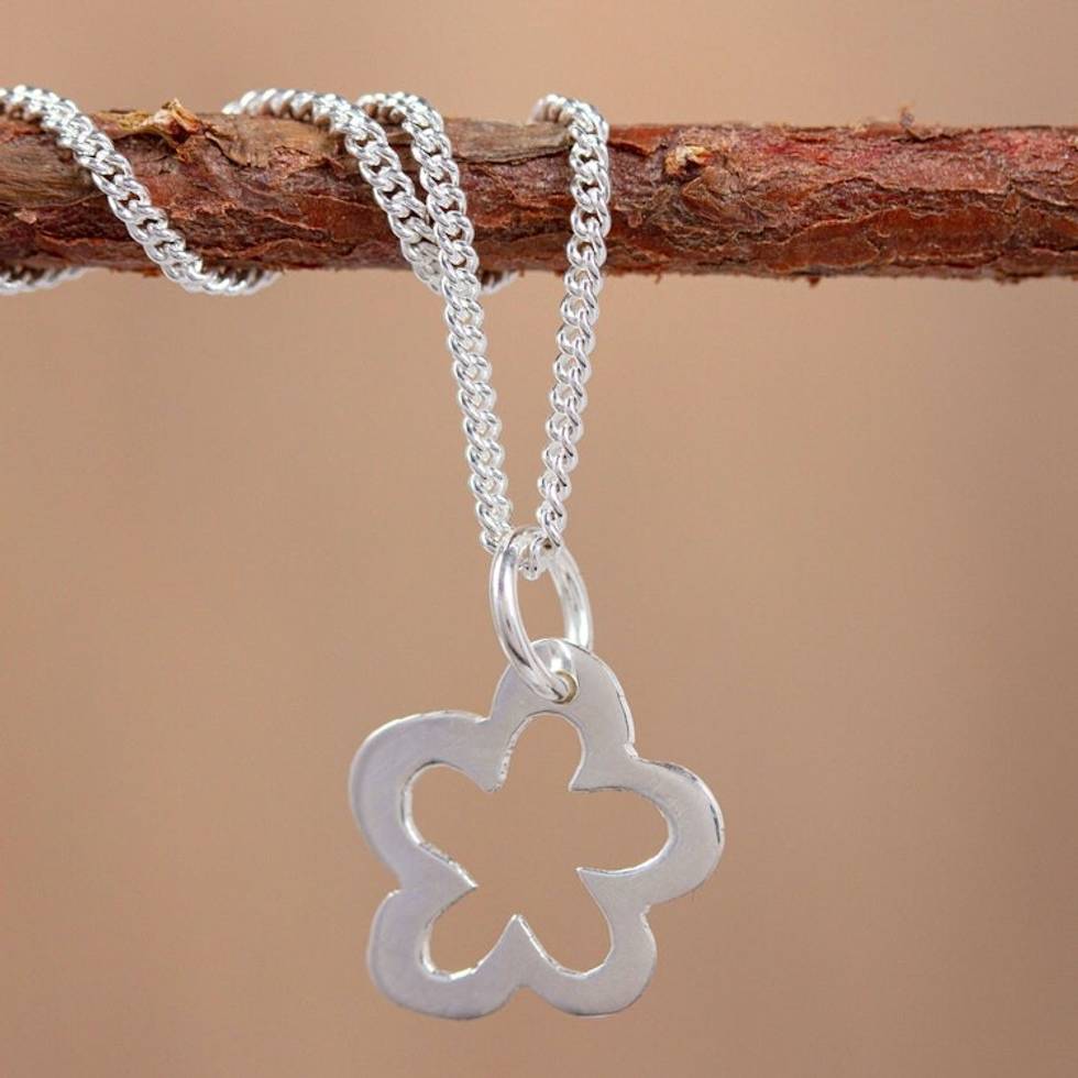 Floral Pendant Necklace in Sterling Silver 'Solitary Flower' Item ID: 2671808352