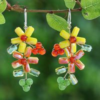 Floral Quartz and Glass Beaded Dangle Earrings from Thailand 'Solar Spring' Item ID: 2671646581