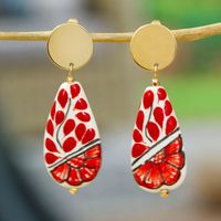 Floral Red Gold-Accented Drop-Shaped Ceramic Dangle Earrings 'Passionate Rain' Item ID: 2671798800