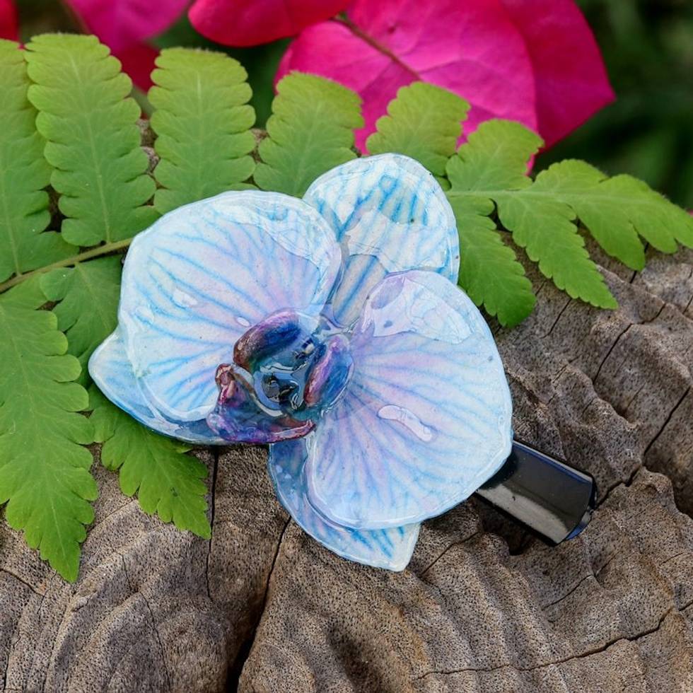 Floral Resin-Coated Blue Orchid Stainless Steel Hair Clip 'Winter Fantasy' Item ID: 2671646409